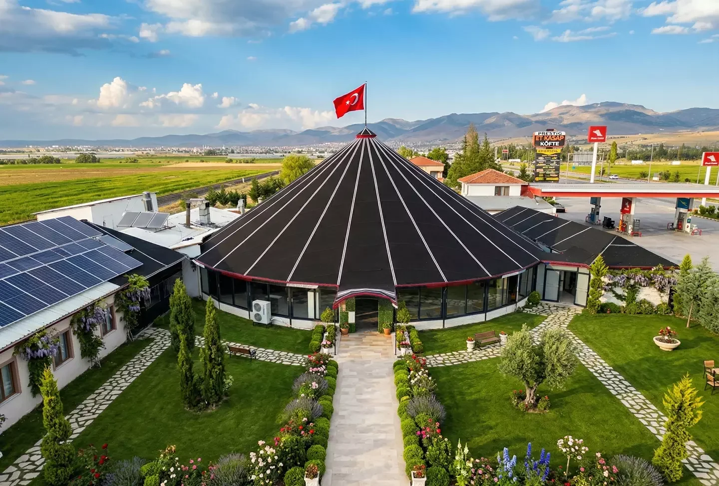 Osmanlı saray çadırı ilhamıyla tasarlanan, dekoratif iç mekân seçenekleri ve yüksek tavanlı tören yapısı.